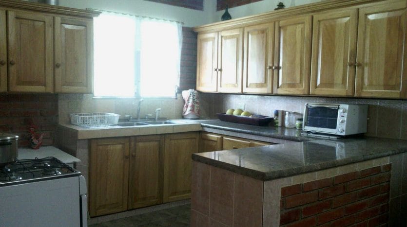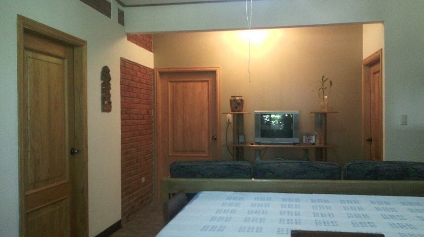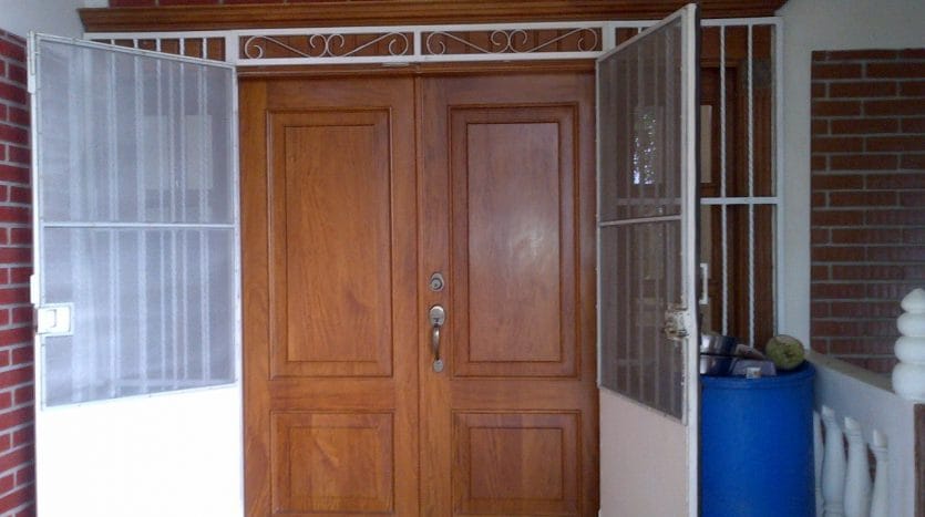 Two-story, 2475 sq ft house (230 m2) completed in 2010. Total 4 bedrooms and 3 full baths. Built of brick with attractive non-slip tile flooring throughout. The first floor comprises guest bedroom or maid’s quarters, full bath with storage and walk-in shower, large tiled and covered patio, bodega, and large laundry area. The second floor comprises an open plan living/dining room, kitchen with breakfast bar, 3 bedrooms including en suite master bedroom and all with large hardwood closets, a second full bath, and covered tiled terrace/balcony. Custom hardwood doors, cabinets, and closets. Custom exterior metal screen doors. Landline telephone, cable TV, and Internet connections.