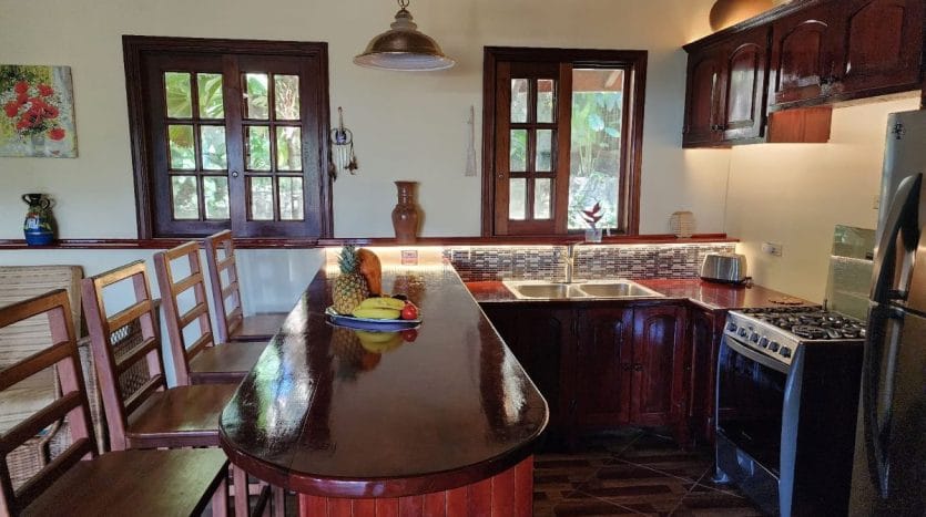 Total: 3 bedrooms, 3 washrooms, 2 full equipped kitchens, 2 AC, laundry room with washer and dryer, 3 big balconies and porch with beautiful ocean view, 28 French doors, 6 inner doors, all windows frames and partly furniture made of solid mahogany, the clay tiled roof of the colonial style, 440 m long high fence around the whole property, Rosita woodworking on the ceiling into the Main House, unique water system with big water tank and filter, delightful landscaping with rock steps, four huge mango trees, palm trees, shrubs, flowers, etc., 2 min. walk to the crystal clear mountain river for relaxation and bathing, 15 min. walk distance to the downtown and market place, 20 min. walk to the beach, new concrete road from the downtown directly to the property, very quiet and safety place, the House designed and built to American standards, city property taxes just 90 (!) USD per year.